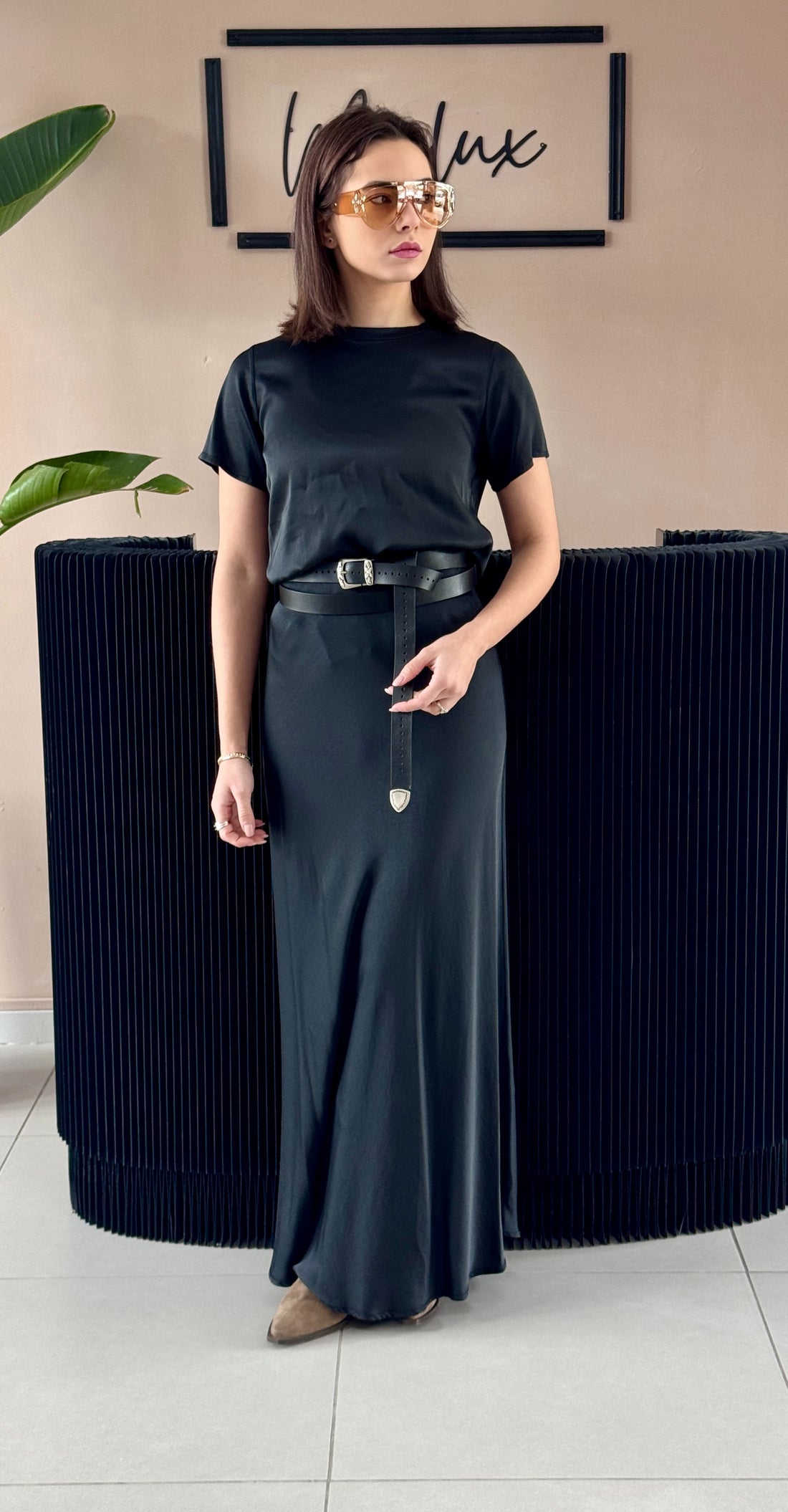 Gonna lunga in satin morbido.