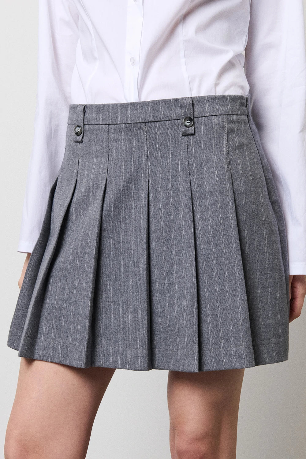 Pantagonna con pieghe tessuto gessato.