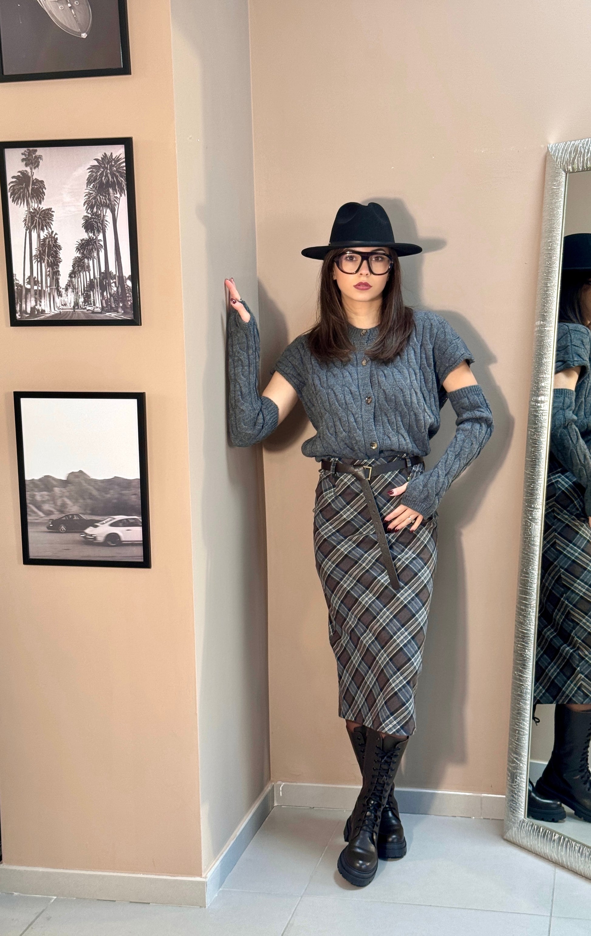 Gonna longuette check a tubo, cintura inclusa, spacco sul retro.
