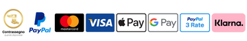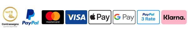 Carte di credito e debito, PayPal, bonifico bancario e contrassegno (+8€). Tutti i pagamenti sono sicuri e protetti.